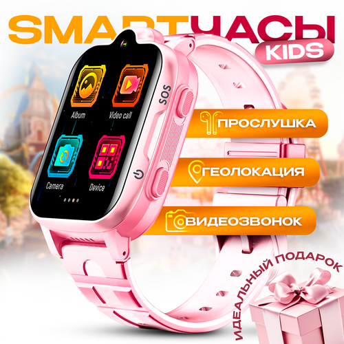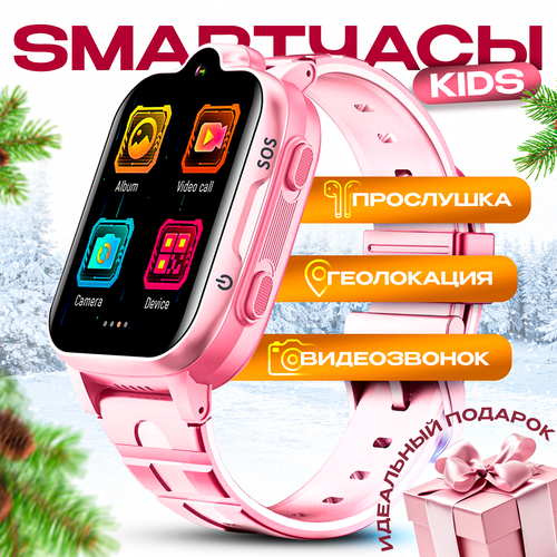 Смарт часы детские умные 4G GPS, с прослушкой, кнопкой SOS, умные часы, розовые