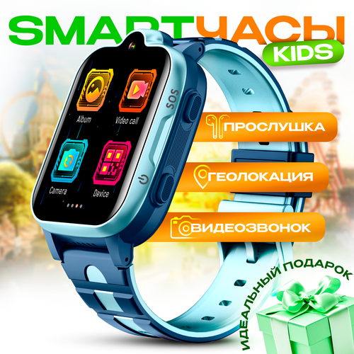 Детские умные смарт часы 4G с GPS, с прослушкой, с камерой, кнопкой SOS , умные часы, kidphone для подростка и ребенка голубые
