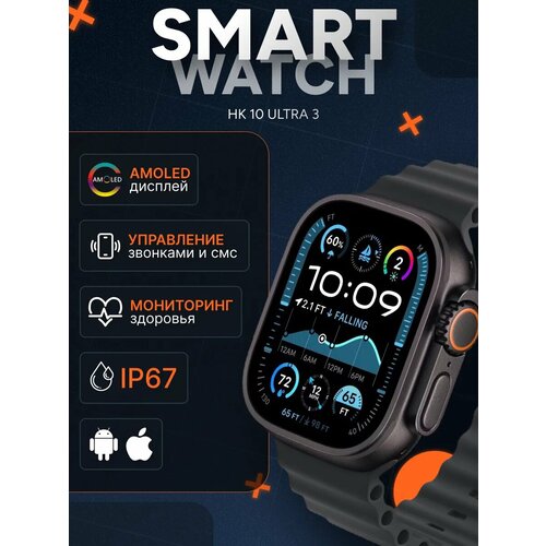 Смарт часы HK10 Ultra 3, 2.02 Amoled экран, c Chat GPT для iPhone и Android, Черные