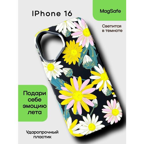 Чехол на IPhone 16 с MAGSAFE женский из ударопрочного пластика люминесцентный с защитой камеры зеленый