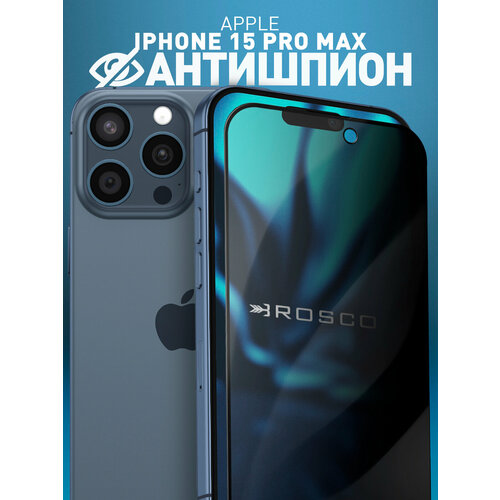 Защитное стекло антишпион на Apple iPhone 15 Pro Max (Айфон 15 Про Макс), с эффектом приватности, бренд Rosco, 1 шт