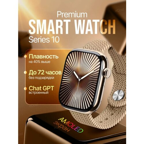 Умные часы HK10 Pro Max, AMOLED экран 2.2, NFC, ChatGPT для iOS и Android, 3 ремешка, Бронзовый