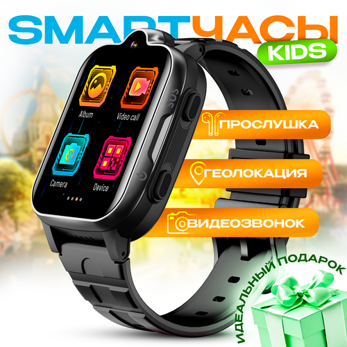 Смарт часы умные детские 4G GPS, с прослушкой, с камерой, кнопкой SOS часы-телефон для детей, умные часы, kidphone для подростка и ребенка черные черный