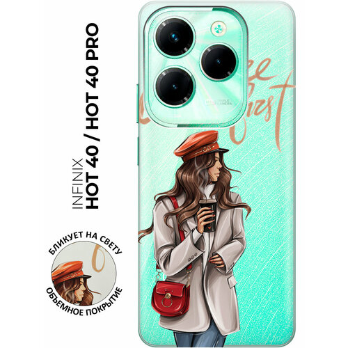 Силиконовый чехол на Infinix Hot 40 / Hot 40 Pro / Инфиникс Хот 40 / Хот 40 Про с рисунком "Cofee First" прозрачный