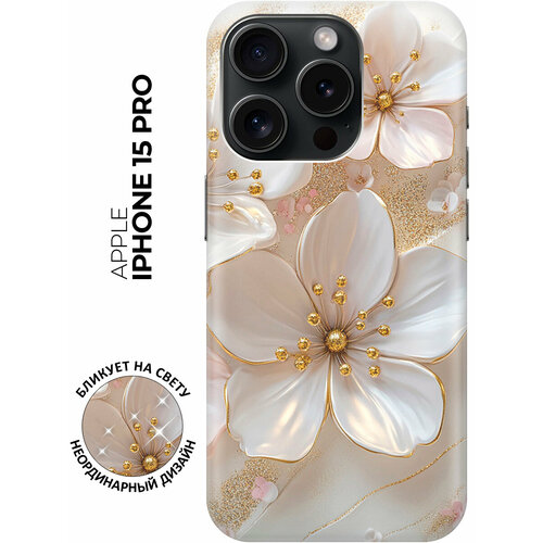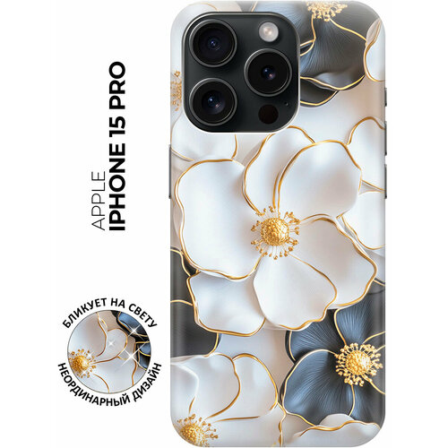 Силиконовый чехол на Apple iPhone 15 Pro с принтом "Белые фиалки"