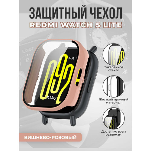 Жесткий защитный чехол со стеклом для Redmi Watch 5 Lite, вишнево-розовый
