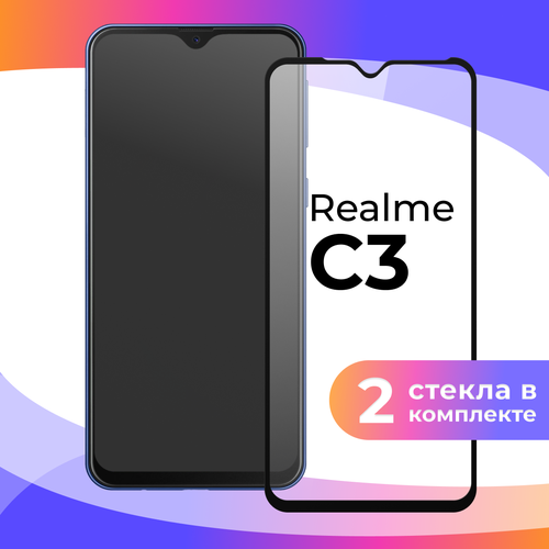 Комплект 2 шт. Защитное стекло для телефона Realme C3 / Глянцевое противоударное стекло с олеофобным покрытием на смартфон Реалми С3