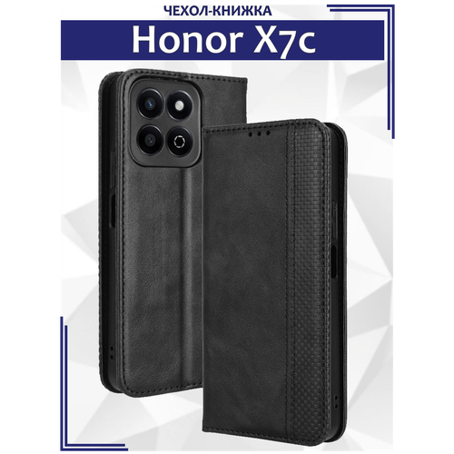 Чехол книжка для Honor X7C с магнитом и отделением под карты / Хонор X7C (черная)