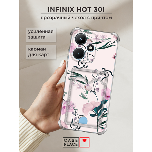 Чехол на Infinix Hot 30i (Инфиникс Хот 30i) с картой и принтом Цветы