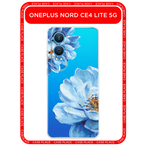 Чехол на OnePlus Nord CE4 Lite 5G / Ван Плас Норд СЕ 4 Лайт 5G с принтом Голубые клематисы, прозрачный