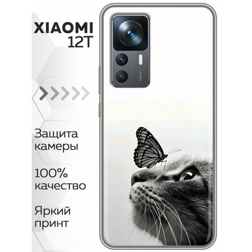 Дизайнерский силиконовый чехол для Сяоми 12Т / Xiaomi 12T Кот и бабочка