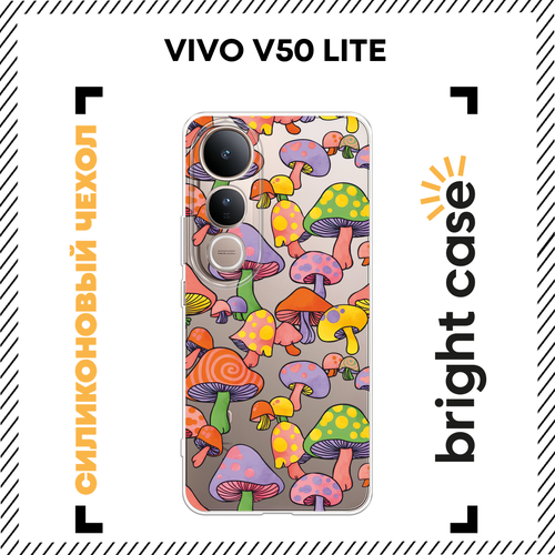 Чехол на Vivo V50 lite / Виво В50 Лайт с принтом Цветные грибы, прозрачный