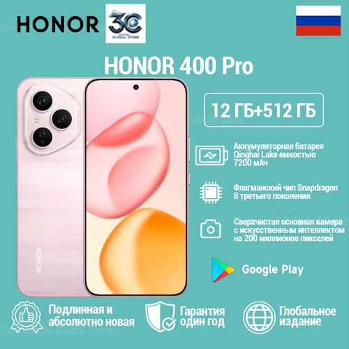 HONOR 400 Pro – флагман с Snapdragon, OLED экран 120 Гц, NFC, Android с Google,CN, 12/512,Розовый