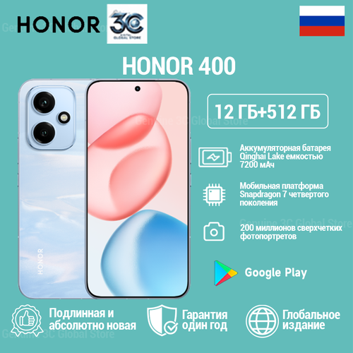 Honor Смартфонr Honor 400, 200Мп, NFC, Android 15, 6000мАч,12/512ГБ, Синий