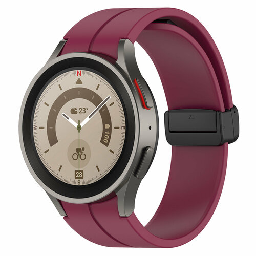 Силиконовый ремешок для Samsung Galaxy Watch 4/5/6, L, серебристая застежка, винно-красный
