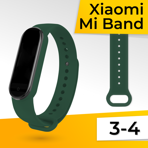 Силиконовый ремешок для умных часов Xiaomi Mi Band 3 и 4 / Сменный спортивный браслет для фитнес трекера Сяоми Ми Бэнд 3 и 4 / Темно-зеленый