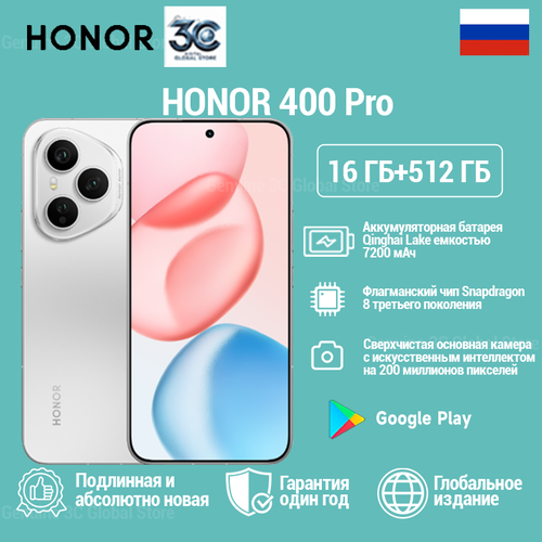 HONOR 400 Pro 5G, 16/512 ГБ, Snapdragon, 120 Гц, NFC, быстрая зарядка, Серебристый