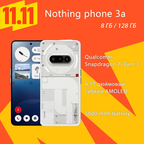 Смартфон Nothing Phone(3a), 8+128 ГБ, белое