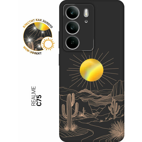 Силиконовый чехол на Realme C75 с принтом "Солнце дикого запада" матовый черный