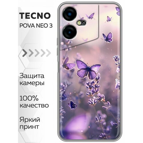 Чехол для Tecno Pova Neo 3 с принтом бабочки и лаванда (Техно Пова Нео 3)