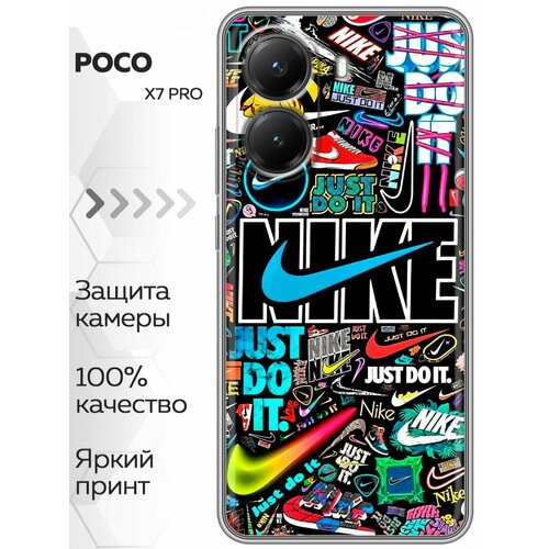 Чехол для Poco X7 Pro с принтом найк nike черный (Поко Х7 Про)
