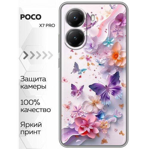 Чехол для Poco X7 Pro с принтом Красивые бабочки (Поко Х7 Про)