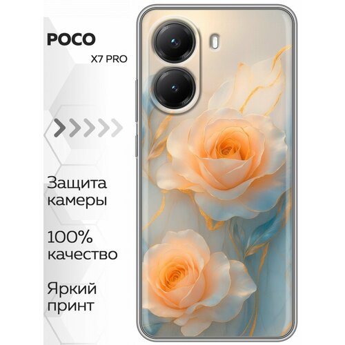 Чехол для Poco X7 Pro с принтом женский с цветами (Поко Х7 Про)