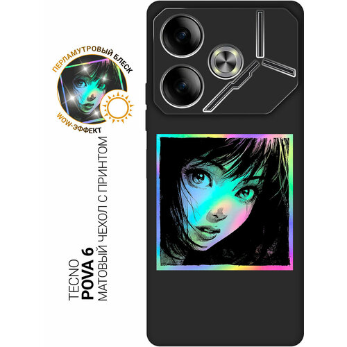 Силиконовый чехол на Tecno Pova 6 с принтом "Очарование аниме-красоты" матовый черный