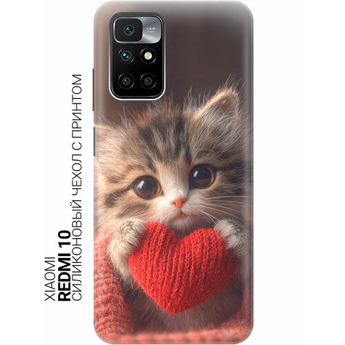 Силиконовый чехол на Xiaomi Redmi 10 с принтом "Котик и нежное признание в любви"