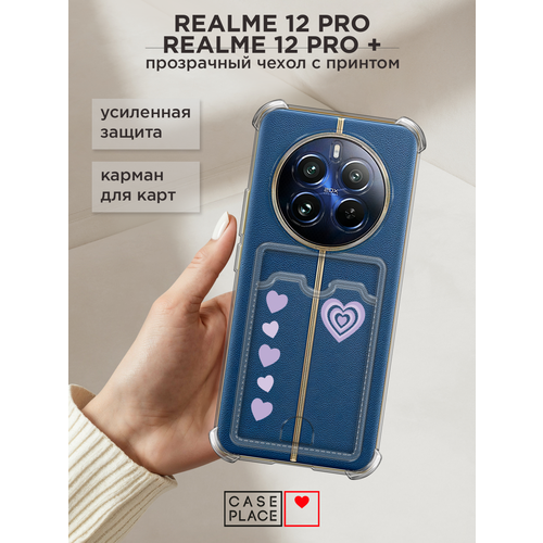 Чехол на Realme 12 Pro/Realme 12 Pro+ (Реалми 12 Про/Реалми 12 Про Плюс) с картой и принтом Прозрачный с сердечками