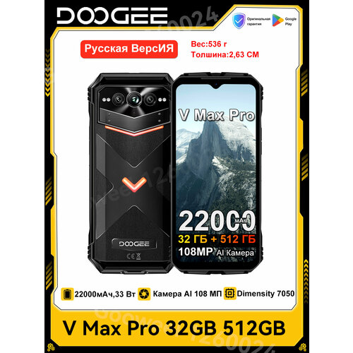 Смартфон DOOGEE V MAX Pro 32GB(12+20) 512GB 22000mAh ,108MP, Android 14, Black