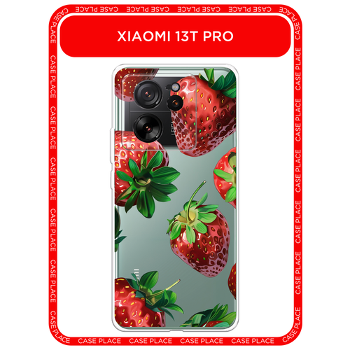 Чехол на Xiaomi 13T Pro / Сяоми 13Т Про с принтом Сочная клубника 3, прозрачный