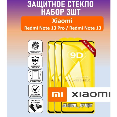 Комплект 3 в 1: Защитное полноэкранное стекло для Xiaomi Redmi Note 13 Pro / Redmi Note 13 ( 3 шт ) Ксяоми Редми Ноте 13 Про / Редми Ноте 13 Full Glue