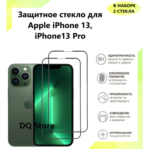 2 Защитных стекла на Apple iPhone 13 / iPhone 13 Pro / Эпл Айфон 13 / Айфон 13 Про . Полноэкранные защитные стекла с олеофобным покрытием