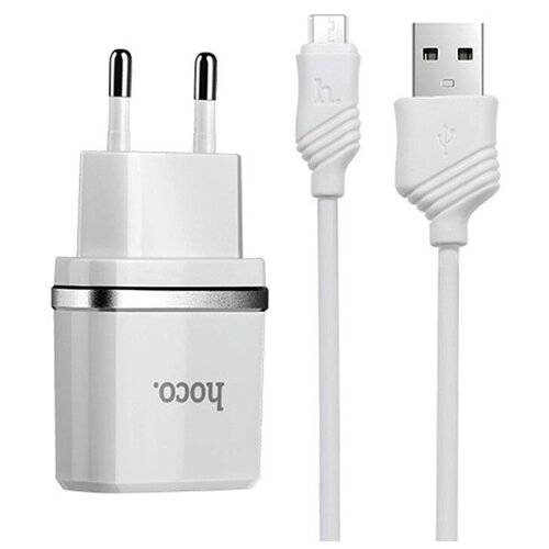 Сетевое зарядное устройство hoco. C11 Smart + кабель microUSB, Global, белый