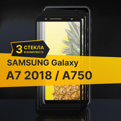 Комплект 3 шт. Противоударное защитное стекло для телефона Samsung Galaxy A7 2018 и A750 / Полноклеевое 3D стекло с олеофобным покрытием на смартфон Самсунг Галакси А7 2018 и А750 / С черной рамкой