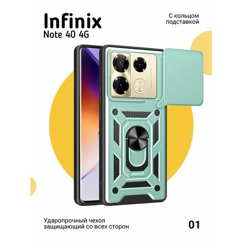 Чехол О'кейси, для Infinix Note 40, с кольцом-держателем, зелёный
