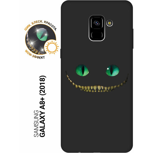 Матовый Soft Touch силиконовый чехол на Samsung Galaxy A8+ (2018), Самсунг А8 Плюс 2018 с 3D принтом "Cheshire Cat" черный