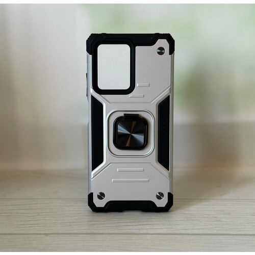 Противоударный чехол для Xiaomi Redmi Note 12 Pro 5G серебро с пластиной и кольцом подставкой