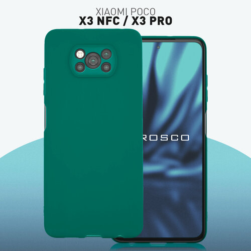Матовый силиконовый чехол Rosco на Xiaomi Poco X3, X3 NFC и X3 Pro (Сяоми Поко Х3, Х3 НФС и Х3 Про), тонкий, темно-зеленый