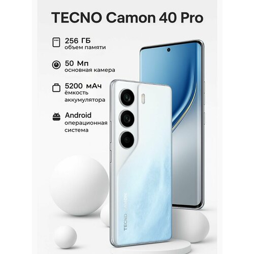 Смартфон TECNO Camon 40 Pro 5G 8/256Gb GLACIER WHITE, андроид, память 256Гб