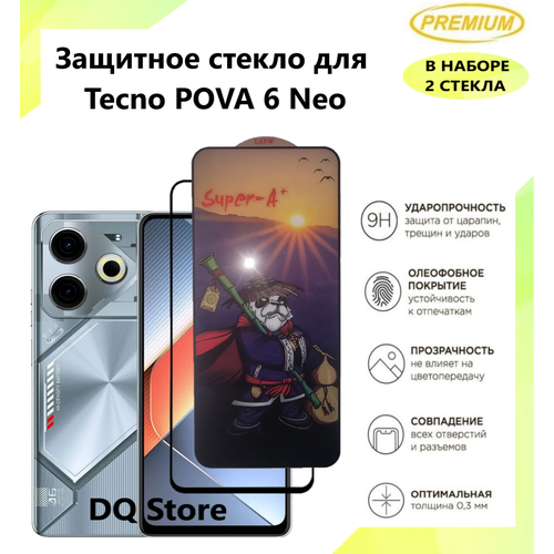2 Защитных стекла на Tecno POVA 6 Neo / Техно пова 6 Нео . Полноэкранные защитные стекла с олеофобным покрытием Premium