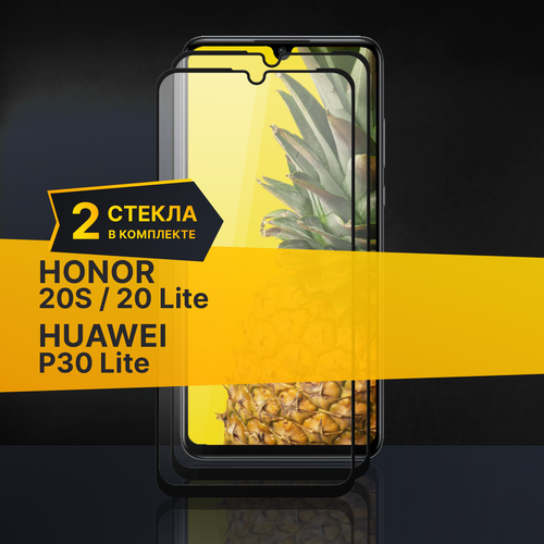 Комплект 2 шт. Противоударное защитное стекло для телефона Huawei P30 Lite, Honor 20S, 20 Lite / Полноклеевое 3D стекло с олеофобным покрытием на смартфон Хуавей П30 Лайт, Хонор 20С, 20 Лайт / С черной рамкой