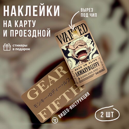 Виниловая наклейка на карту банковскую аниме Ван Пис Луффи Пятый Гир // One Piece