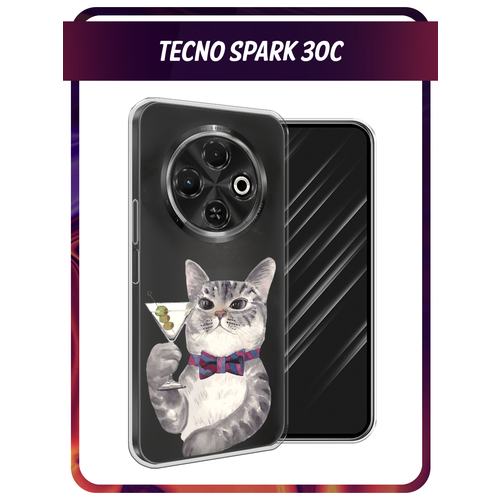 Чехол на Tecno Spark 30C / Текно Спарк 30C с принтом Кот джентльмен, прозрачный