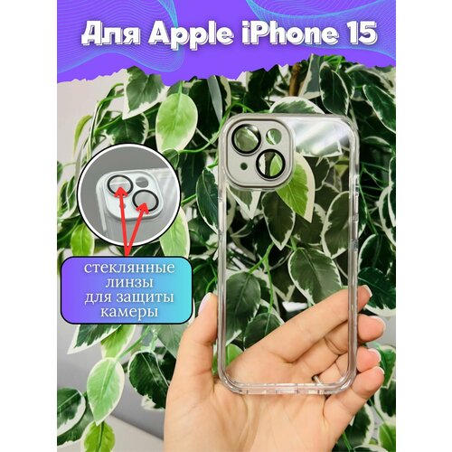 Прозрачный пластиковый чехол Lens для Apple iPhone 15 / Айфон 15 с защитой камеры (Серый)