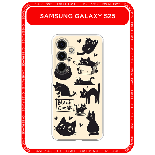 Чехол на Samsung Galaxy S25 / Самсунг S25 с принтом Чёрный котик рисунки