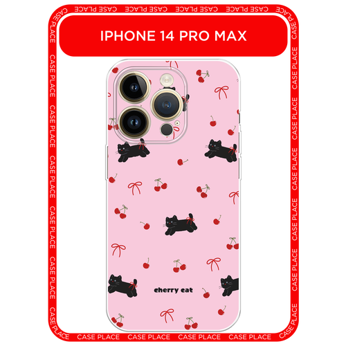 Чехол на Apple iPhone 14 Pro Max / Айфон 14 Про Макс с принтом cherry cat