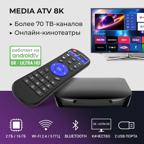 HIPER MEDIA ATV 8K Pro — это компактный медиаплеер для онлайн просмотра фильмов и сериалов, а также ТВ программ в разрешении 8К. Пр...