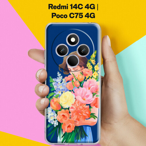 Силиконовый чехол на Xiaomi Redmi 14C 4G / Poco C75 4G с принтом "Девушка С Цветами" с прозрачными бортиками